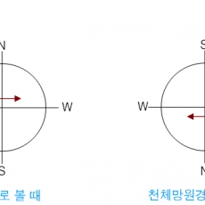 태양의 흑점을 맨눈으로 관측할 경우 관측자는 남쪽을 향해서 보고 있으므로, 시야의 위쪽이 북쪽이고 왼쪽이 동쪽인 것은 쉽게 알 수 있습니다. 이 경우 시야의 ...
