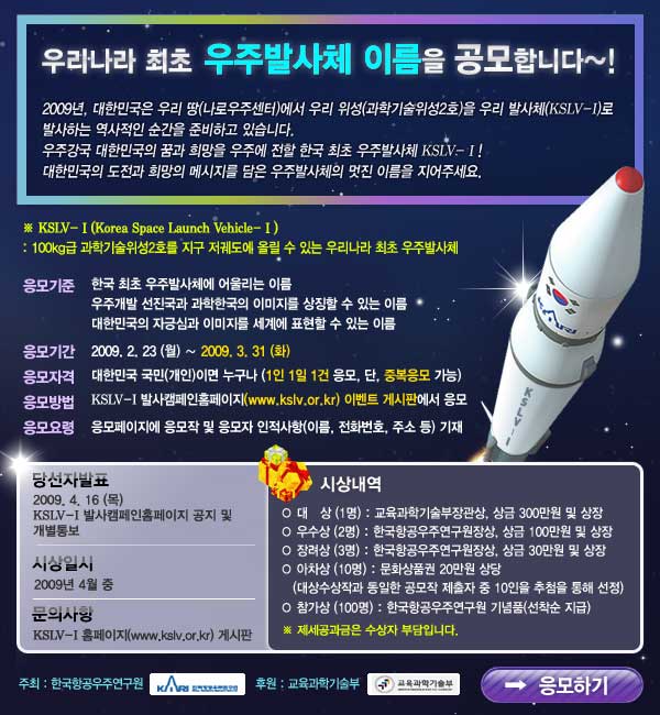 응모하기 : 여기를 클릭하여 KSLV-1 홈페이지로 가서 응모하세요~`