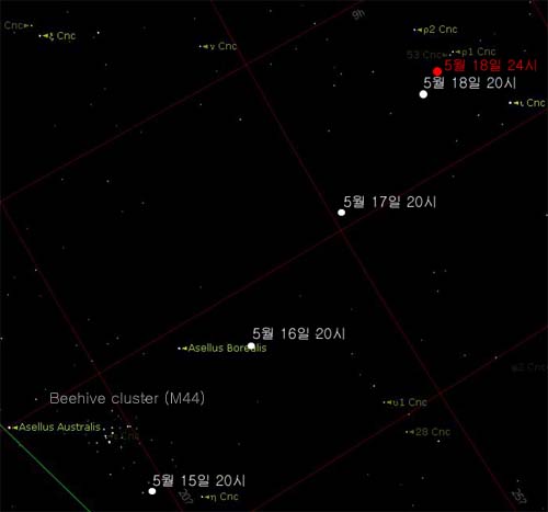 그림에는 5월 18일 24시의 니트의 위치가 빨간색으로 표시되어 있습니다.