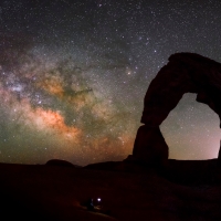델리킷 아치의 밤하늘과 은하수 미국 유타주의 아치스 국립 공원에 있는 델리킷 아치 (Delicate Arch) 너머의 동쪽 하늘에서 은하수가 떠오릅니다. 아치스 국립공원에는 아래 사진에서 볼 수 있는 아치 모양의 지질 구조가 많이 분포합니다. (c) Youngwoo Cho,...