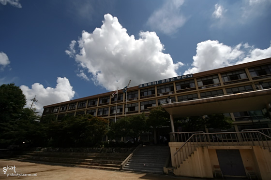 경기도 부천시 부천고등학교 교정 2007-08-16 층쌘구름(층적운, Stratocumulus)이 부천고등학교 본관 건물 위를 덮고 있습니다. 푸른행성의 과학, http://www.skyobserver.net/