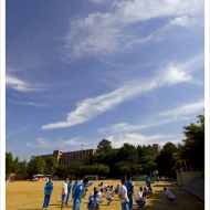 눈부신 가을 오전의 햇살 아래에서 체조하는 부천고등학교 학생들과 털구름(권운) 2006_09_12_부천고등학교 푸른행성의 과학, http://www.skyobserver.net/